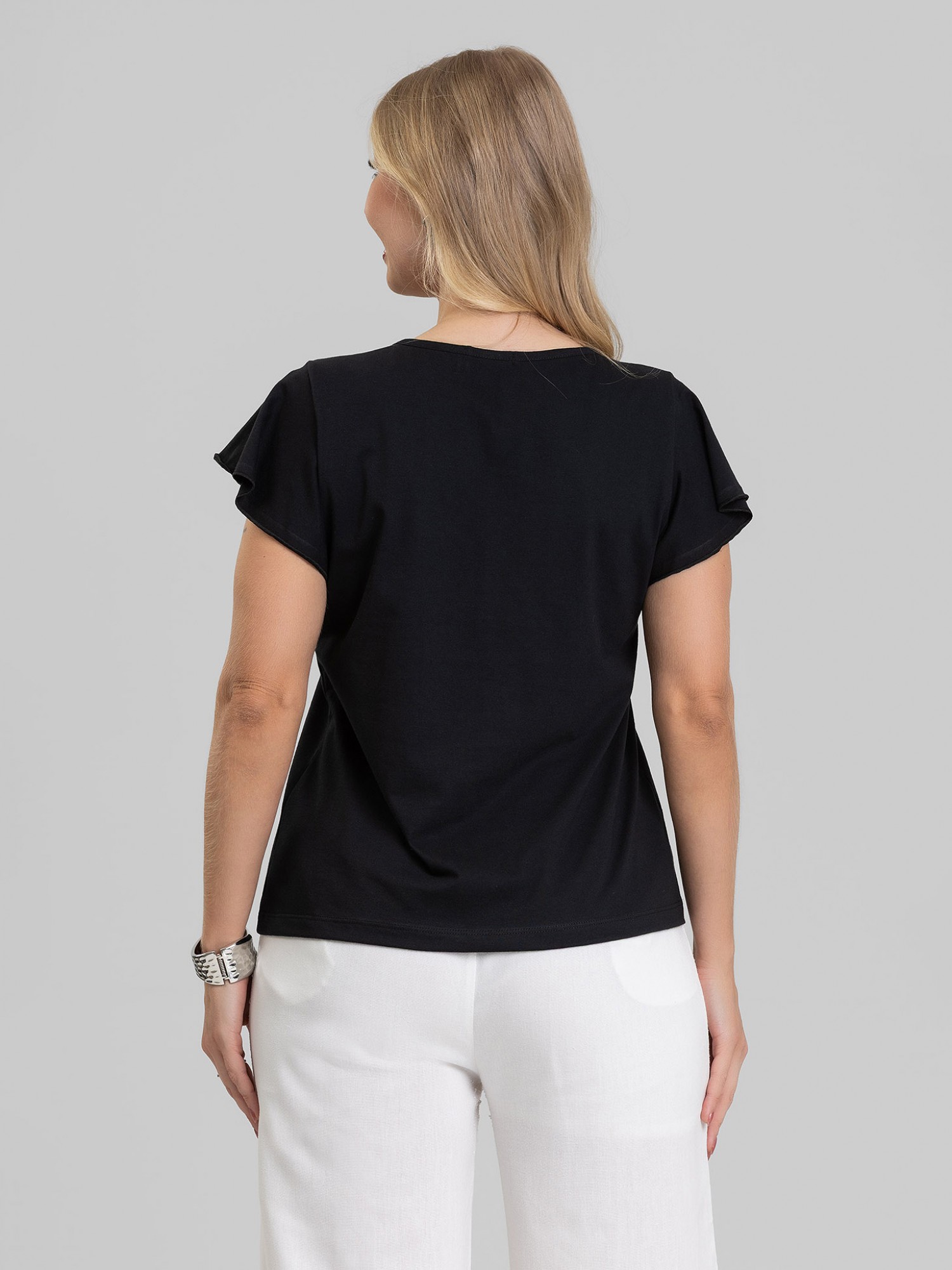 A Blusa Luma 100% Algodão Premium – Preta combina sofisticação e praticidade em uma única peça. Feita em malha premium que não dá bolinha e não deforma, oferece toque macio e respirável. As mangas em babados trazem leveza ao visual, enquanto o decote U alongado com gola estreita adiciona elegância e um caimento moderno. Com comprimento na altura do quadril, é uma blusa versátil e atemporal — perfeita para compor produções elegantes com facilidade.