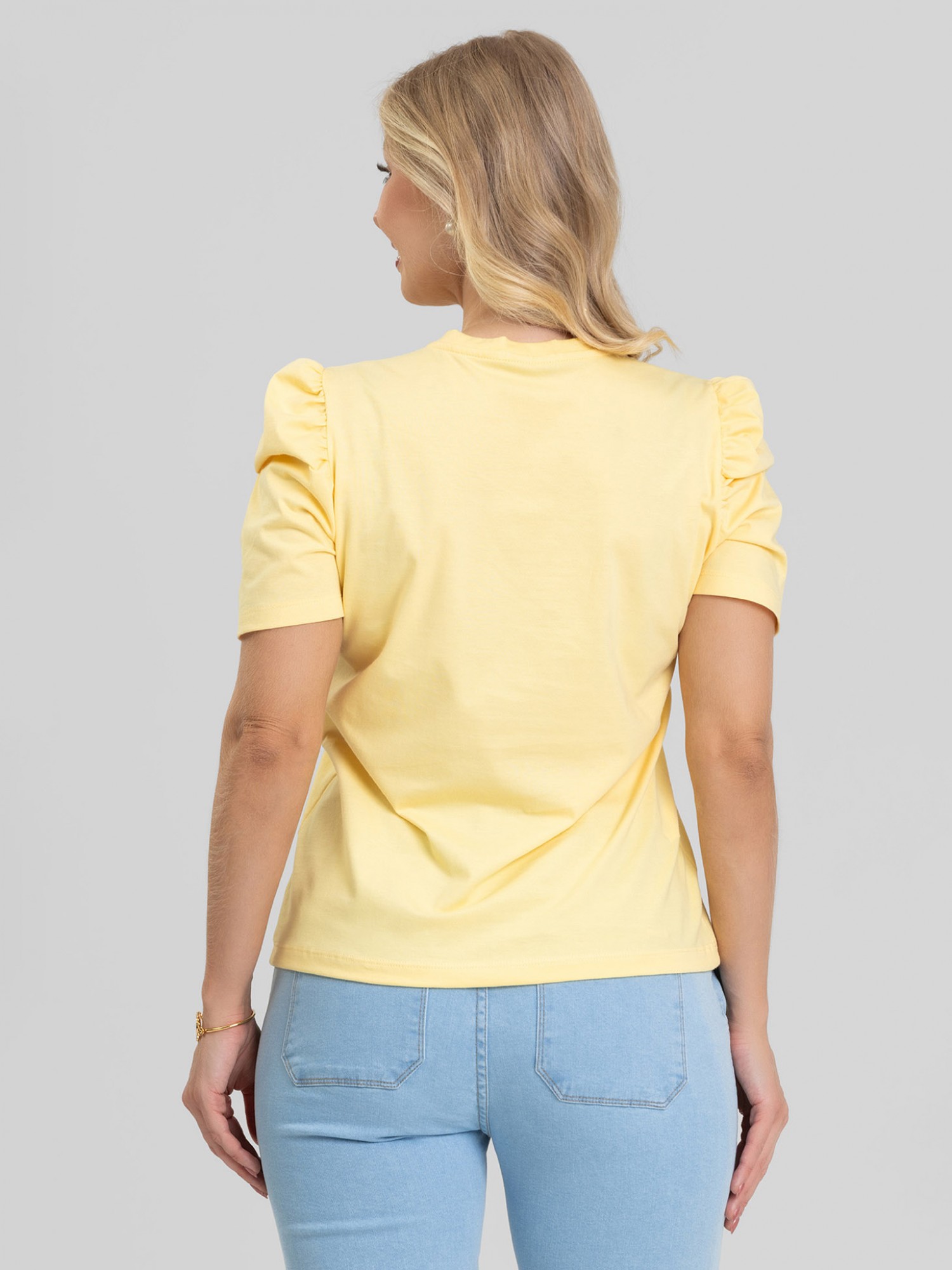 A Blusa decote V e manga bufante Alice no tom Amarelo Manteiga traz delicadeza e luminosidade ao visual. Feita em malha 100% algodão de alta qualidade — que não desbota e não forma bolinhas — valoriza a silhueta com decote V equilibrado e manga bufante romântica. Um tom suave, perfeito para compor looks leves, combinando com jeans, alfaiataria clara ou peças em tons terrosos para um estilo moderno e elegante.