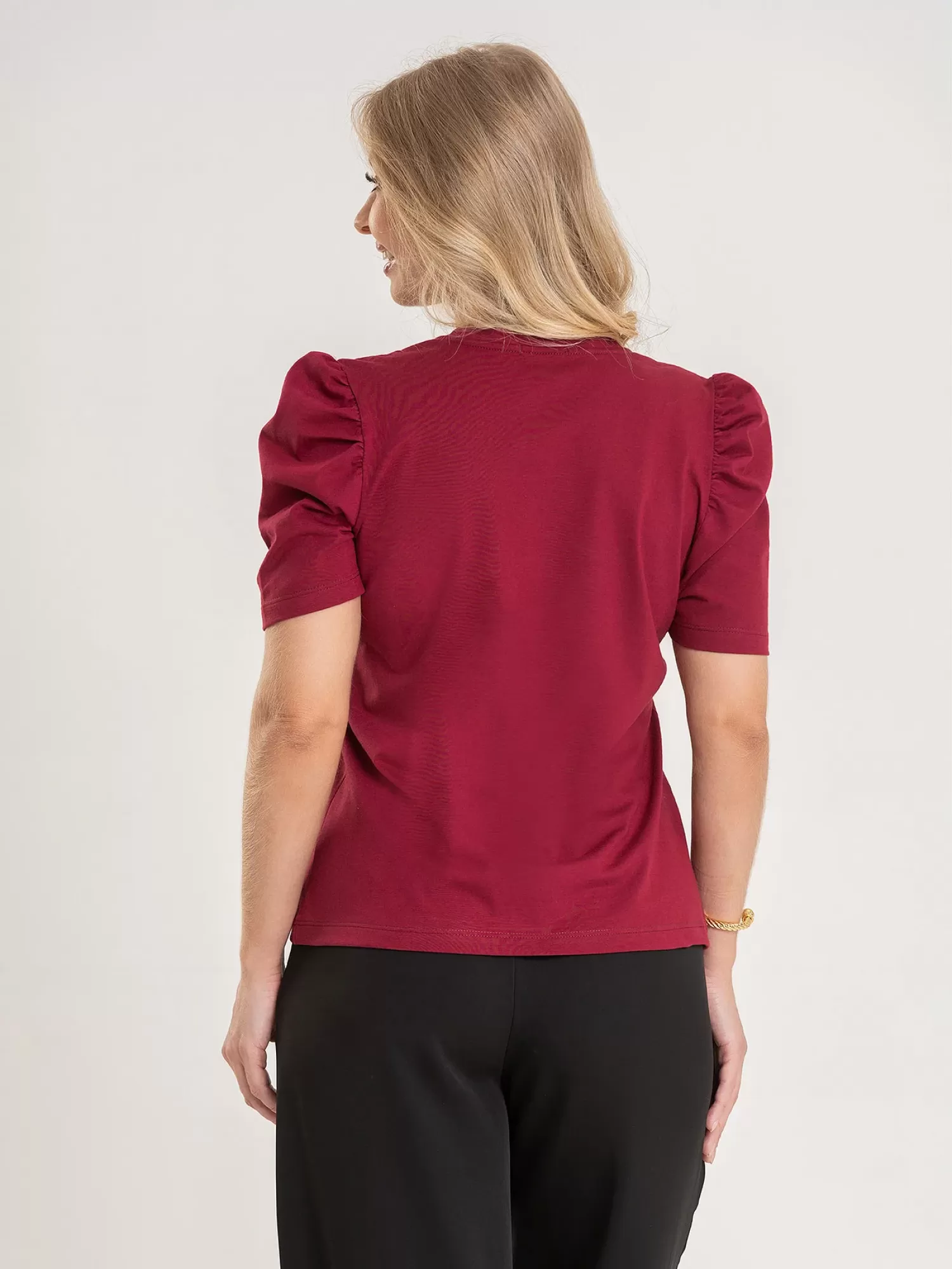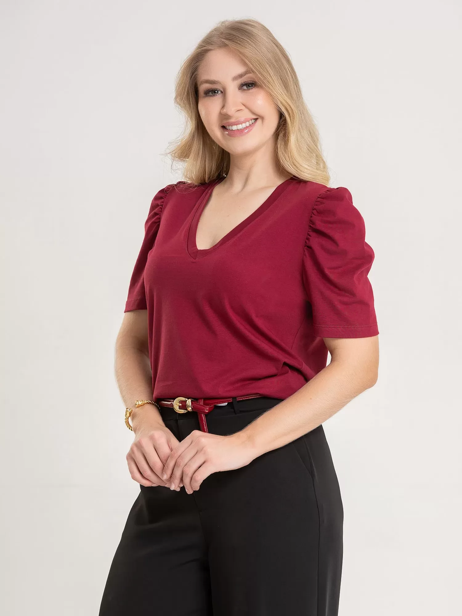 A Blusa Feminina Manga Bufante de Algodão Decote V Alice Vinho traz presença e sofisticação em um tom marcante e atemporal. Com modelagem exclusiva Anazê, valoriza a silhueta com caimento impecável, unindo o volume delicado das mangas bufantes ao charme do decote V, que realça o colo com elegância. Produzida em malha 100% algodão premium, tem toque macio, estrutura firme e alta durabilidade — não desbota e não forma bolinhas. O tom Vinho é intenso e refinado, perfeito para produções que equilibram estilo e conforto. Combina com tons neutros como bege, off-white e grafite, ou com peças em jeans para um visual moderno e versátil.