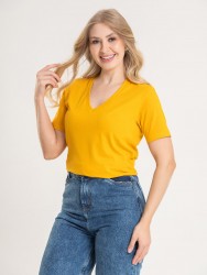 A Blusa Feminina Decote V de Algodão Íris Amarelo Sol é sinônimo de leveza e vivacidade. Seu decote V valoriza o colo com delicadeza, enquanto a modelagem reta e as mangas mais longas com ombros estruturados criam um visual equilibrado e moderno. Produzida em malha 100% algodão premium, tem toque suave, excelente respirabilidade e durabilidade — perfeita para o dia a dia com estilo e conforto. O Amarelo Sol ilumina o look e é ideal para combinar com jeans, branco, bege e tons neutros, adicionando um toque de cor e frescor às produções.