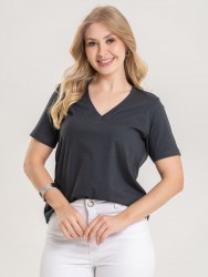 A Blusa Feminina Decote V de Algodão Íris Grafite Intenso traduz elegância atemporal com conforto e praticidade. Com design limpo e modelagem reta, valoriza o corpo com naturalidade, enquanto o decote V na medida certa alonga o colo e traz equilíbrio ao visual. As mangas mais longas com ombros estruturados garantem caimento impecável e segurança ao vestir. Confeccionada em malha 100% algodão premium, é macia, leve e resistente — não desbota e mantém o formato mesmo após várias lavagens. O Grafite Intenso é um neutro sofisticado que combina com tudo: do jeans ao branco, e também com cores marcantes para um visual poderoso.