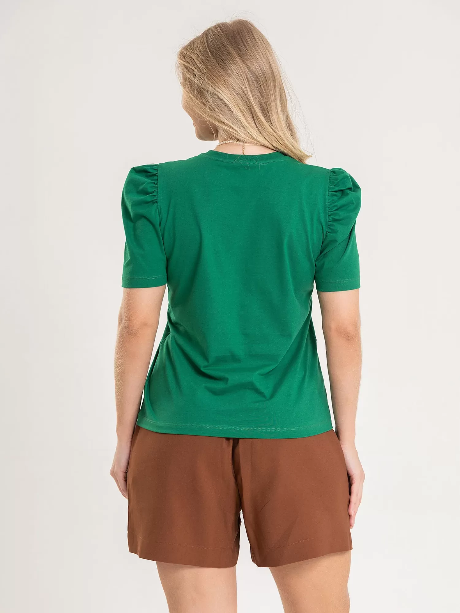 A Blusa Feminina Manga Bufante Serena Verde Folha é uma aposta fresca e elegante para o dia a dia. Sua modelagem exclusiva valoriza a silhueta, com mangas bufantes discretas e decote redondo em ribana canelada. Confeccionada em malha 100% algodão premium, oferece conforto térmico, toque macio e durabilidade. O Verde Folha é um tom fácil de coordenar — fica lindo com branco, jeans, off-white e tons naturais. Uma cor que traz vida às produções neutras e combina com peças claras.