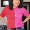Vermelho e pink já se tornou a combinação mais fashionista e desejada nos looks. A mistura das duas cores é sexy e cheio de personalidade. Produzida com malha 100% algodão com fio 30x1 penteado, um fio que já vem com acabamento para deixar a malha com toque mais macio. Com um recorte no centro frente a camiseta bicolor é metade vermelha e metade pink. Frente, manga e costas são no mesmo lado, com a mesma cor, ou vermelho ou pink. O decote é feito com ribana e tem uma costura por toda circunferência para acabamento da gola. A modelagem é de corte reto e permite combinações e estilos cheios de personalidade.