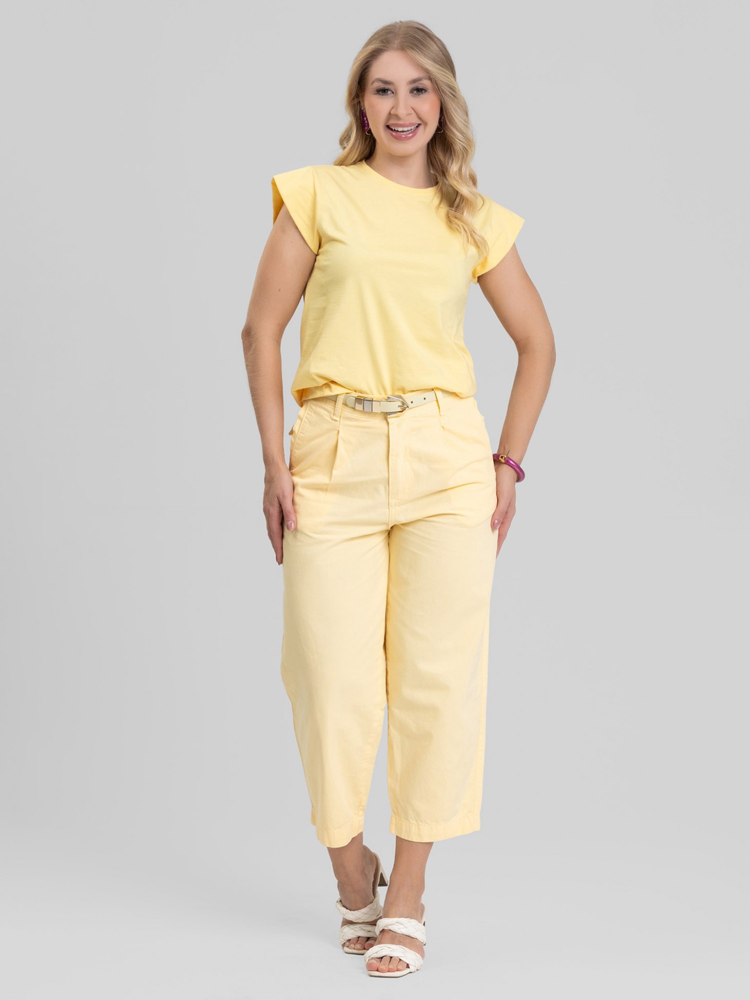 A Regata Feminina 100% Algodão Olívia – Amarelo Manteiga é leve, moderna e cheia de frescor. Produzida em malha premium que não dá bolinha nem deforma, proporciona toque macio e ótima respirabilidade. O recorte lateral valoriza o caimento, enquanto o recorte nos ombros adiciona estrutura e cria um visual contemporâneo. Com gola estreita e comprimento ideal no quadril, é prática e versátil. O tom Amarelo Manteiga traz suavidade e elegância, perfeito para composições iluminadas e cheias de estilo.