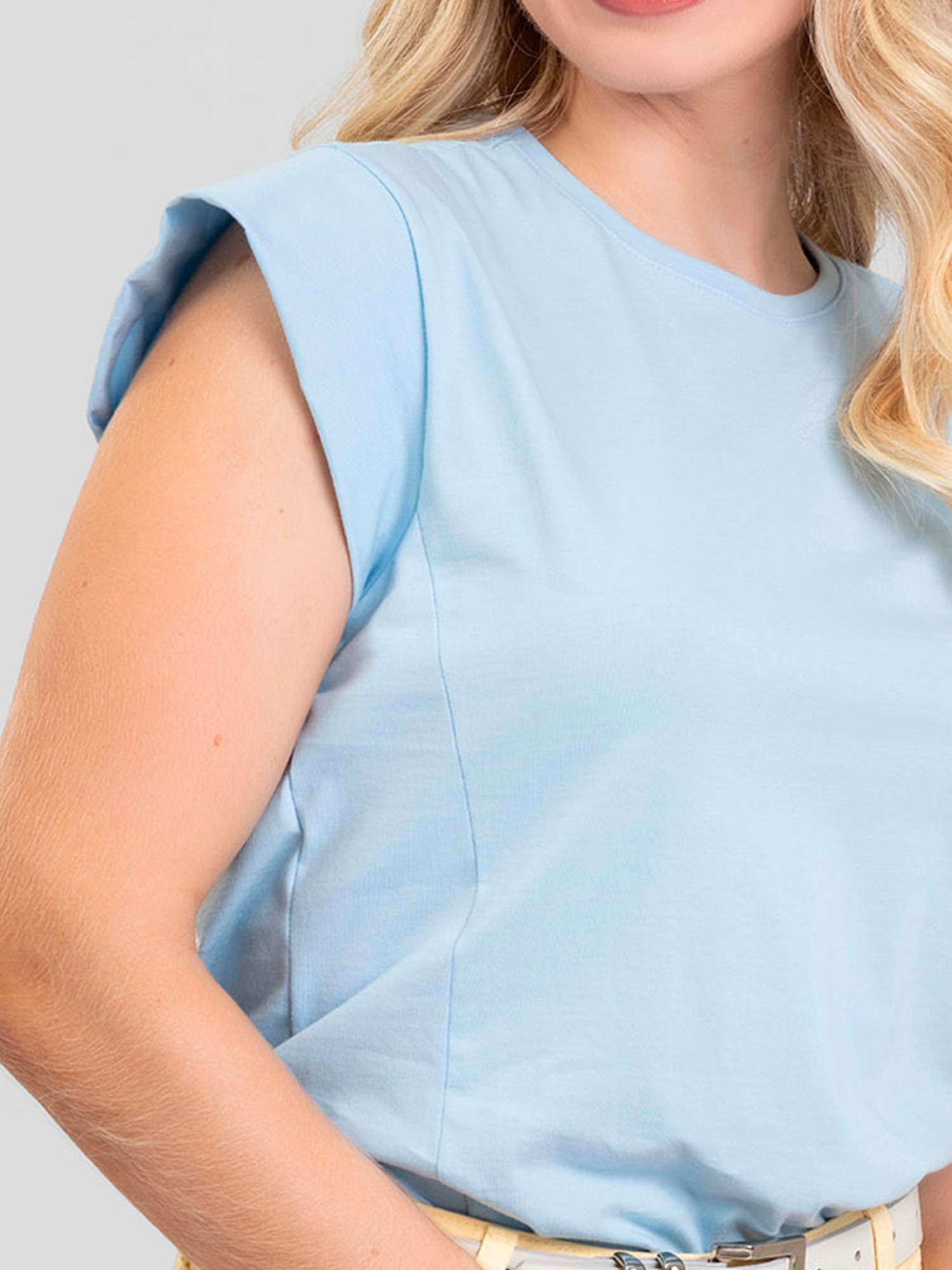 A Regata Feminina 100% Algodão Olívia – Azul Claro une conforto e sofisticação em uma cor fresca e versátil. Feita em malha premium que não dá bolinha e não deforma, oferece toque macio e excelente caimento, reforçado pelo recorte lateral. O recorte nos ombros cria efeito de ombreira e deixa a peça mais moderna. A gola estreita confere acabamento refinado, e o comprimento no quadril facilita a composição de looks. O Azul Claro é suave, leve e perfeito para quem busca um visual clean e contemporâneo.